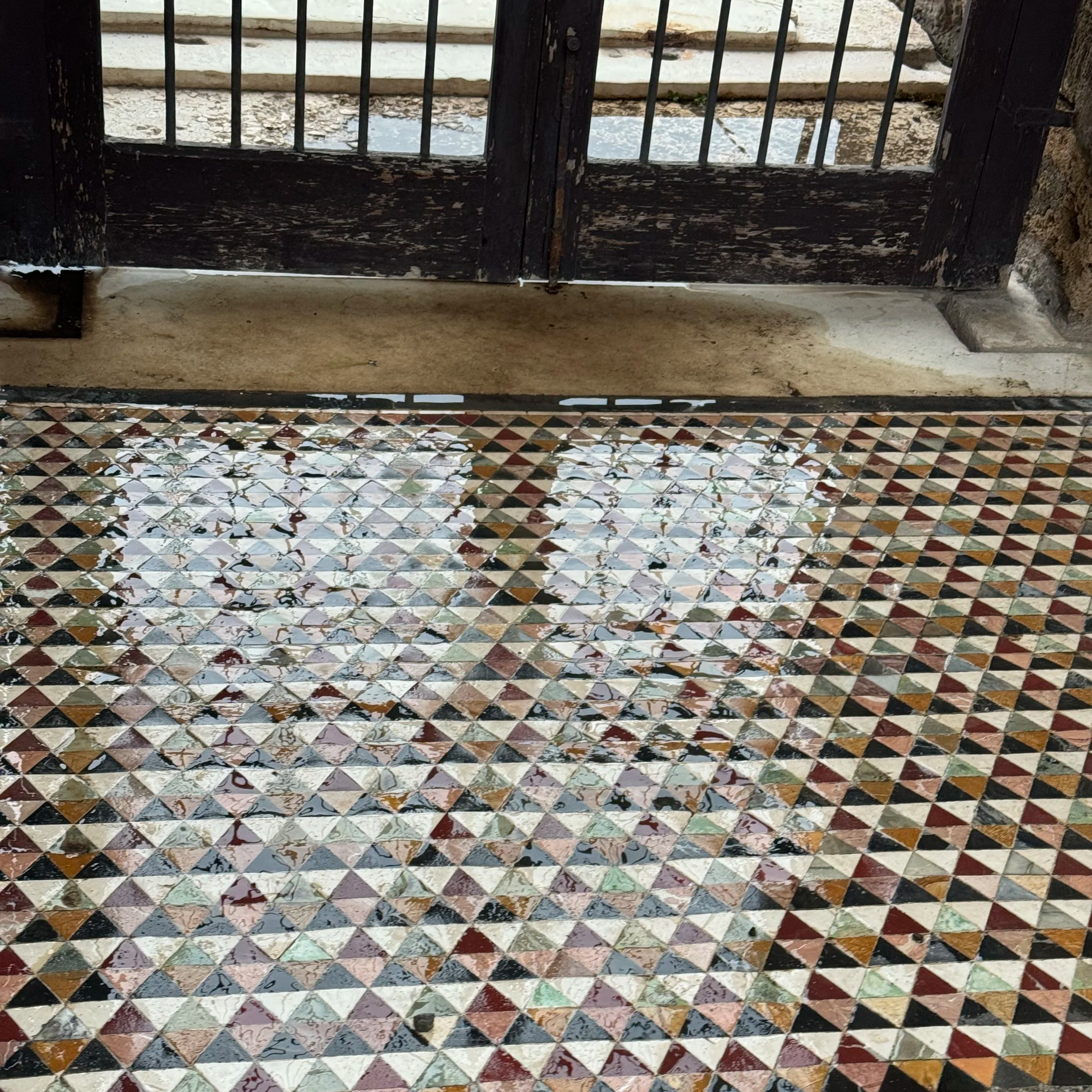 The rain during our visit to Pompeii was relentless—but it came with two unexpected perks. The less brave (or merely curious) tourists fled the site, and the rain-soaked surface revealed the rich colours of the marble mosaics. I was surprised to learn that most of the detailed mosaics have been relocated to the Naples Archaeological Museum, so the next day we headed there to view the incredibly intricate Pompeii mosaics.