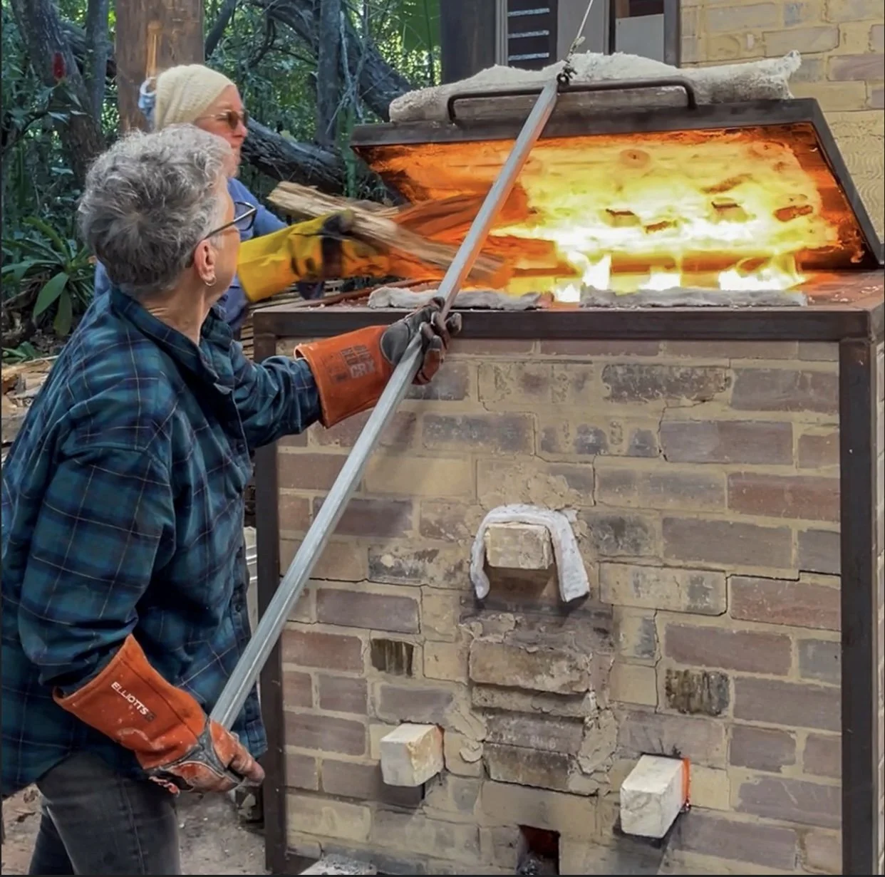 Finally, in early August, Greg was ready to fire it up. He began the drying process the night before and the next day received help from two experienced wood firers, Jacqui and Sue. They all took turns stoking the firebox and checking the temperature every 15 minutes over the 15 hour firing process.